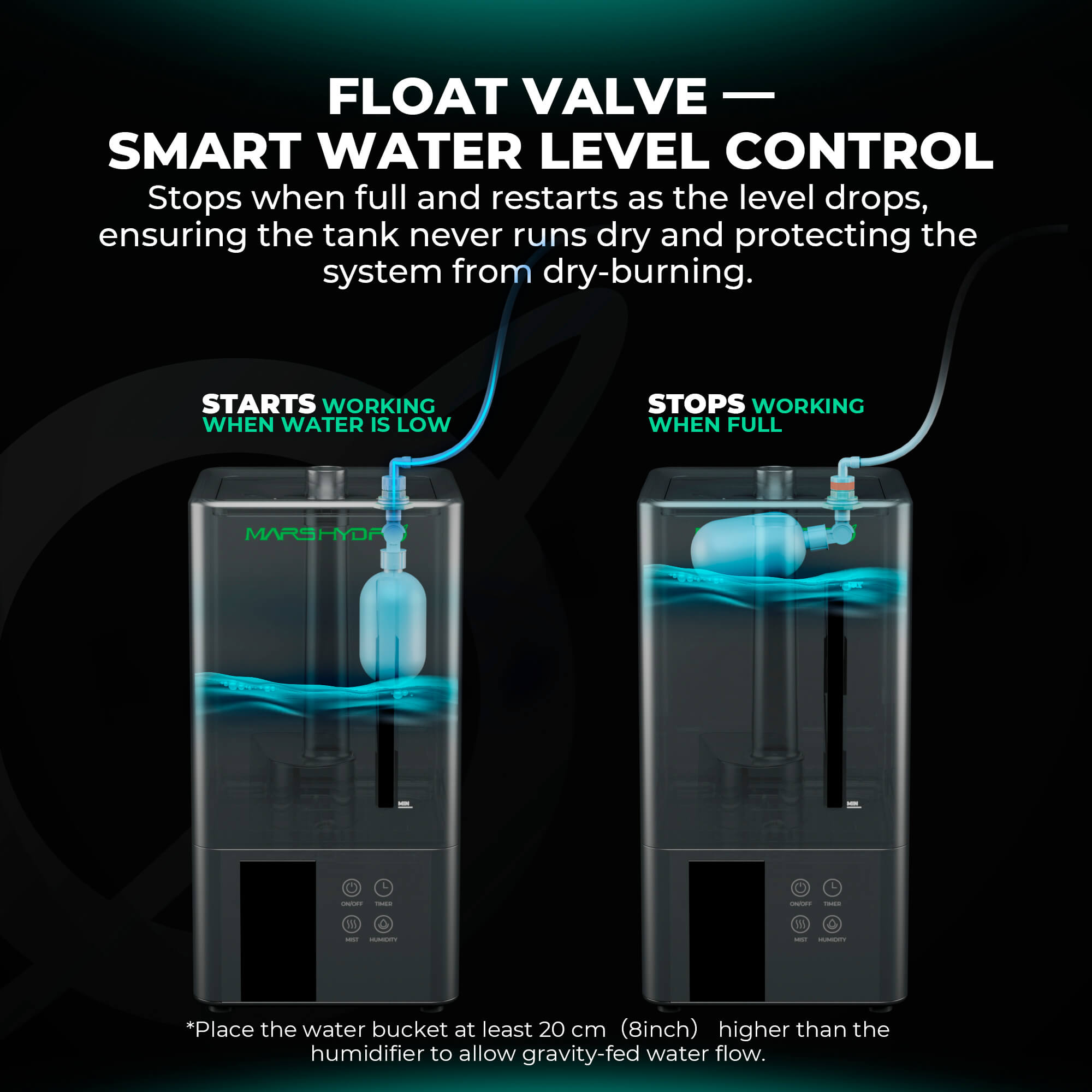 End manual refills and unstable water levels. The Mars Hydro 15L Auto water Kit provides precise, automatic water level control for humidifiers, hydroponic systems, and compatible appliances.
