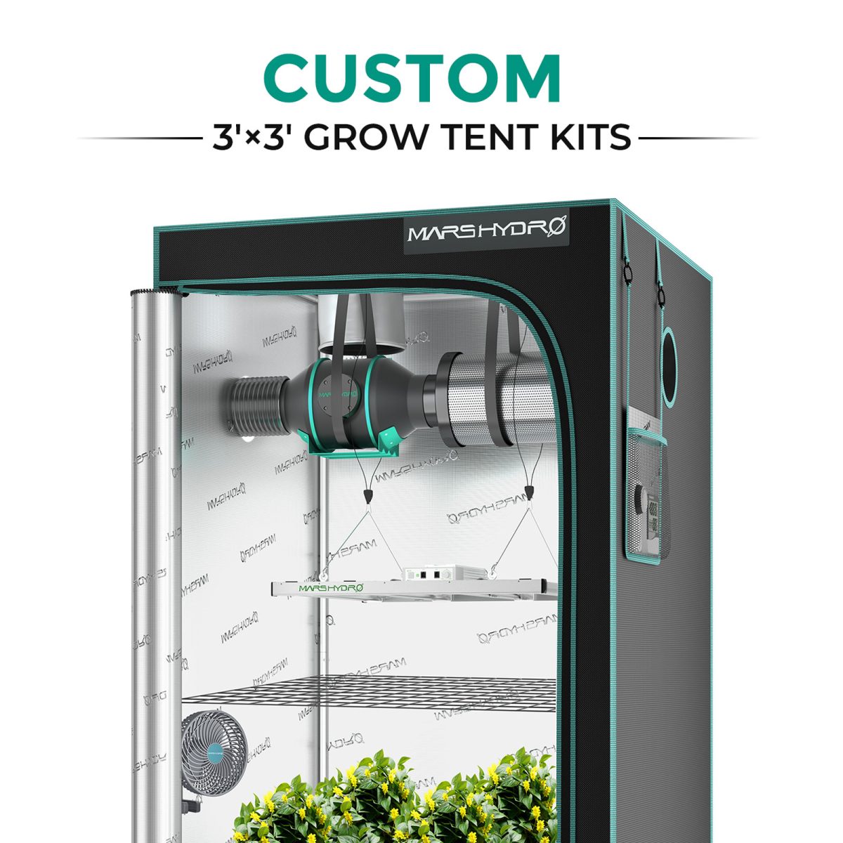Include a hygrometer to monitor on the temperature and humidy of the grow system, ducting and duct clamps to put inline fan and filter together tightly, 5 gallon grow bags as plant containers to hold plants in a healthy environment, and a timer to automatically power off the grow light to meet the plant lighting schedule.