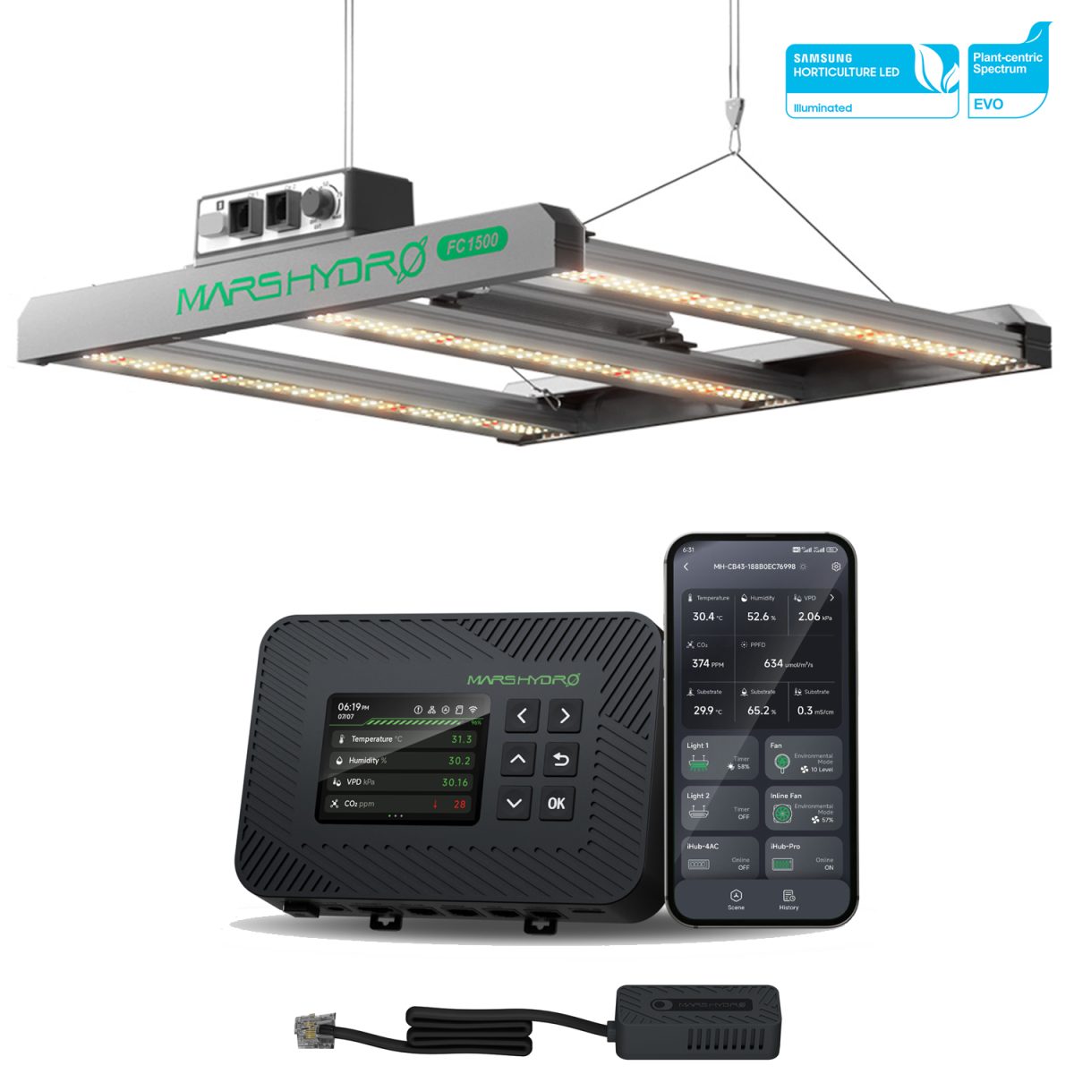 Samsung LM301H EVO chip, highest efficiency chip in the market.  FC3000-EVO LED grow light is advised for home cultivation like tent grow, and will get better results than others with the same wattage. The overwhelming choice for most growers applying in grow tent, small room, cabinet & closet, and plant shelves. You need to buy an extra Mars Hydro iConnect Smart Controller plug-in for smart function.