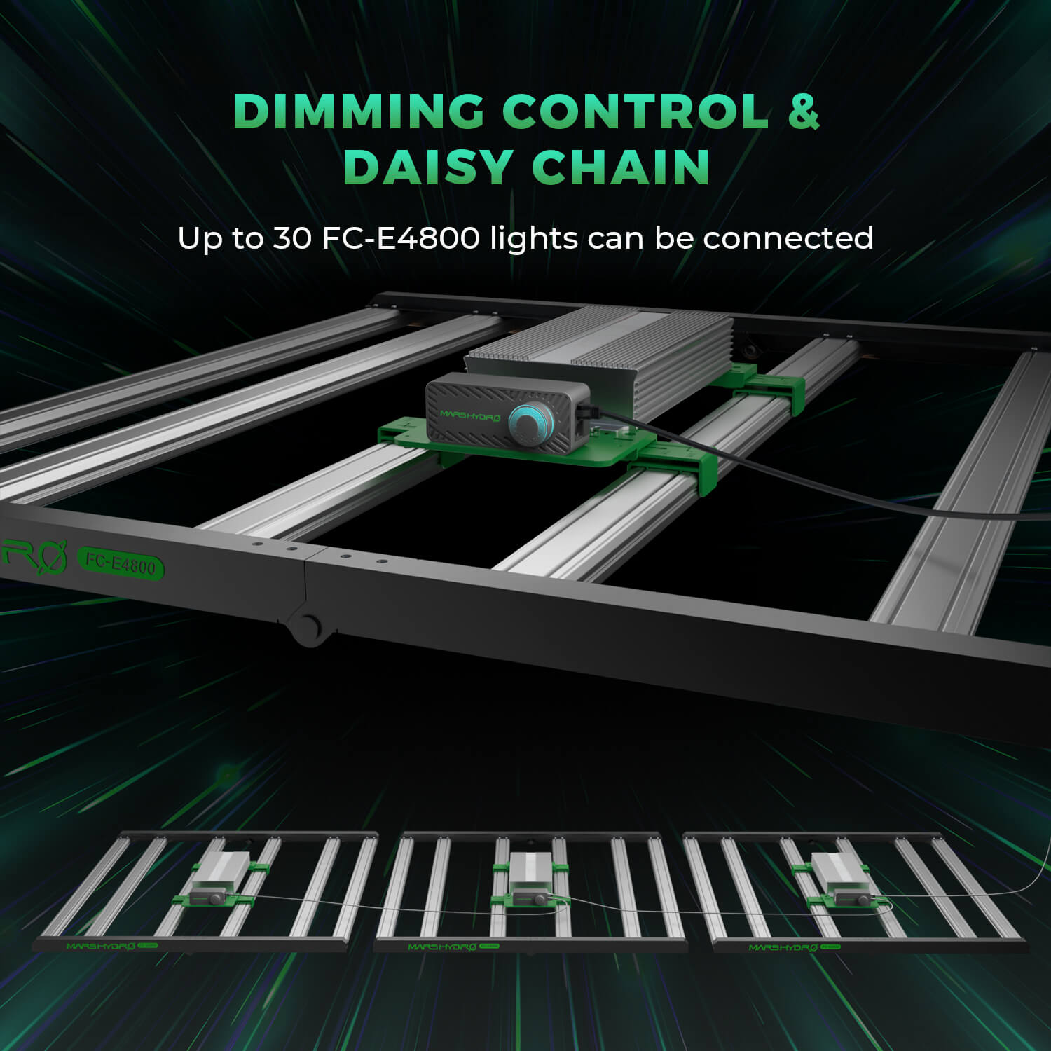 Smart FC-E 4800 LED grow lights support mobile control and cultivation plan programming via Mars Hydro APP. Precisely configuring the intensity down to the month/day/hour/minute to achieve dynamic lighting levels and simulated sunrise and sunset to mimic natural photoperiod in plants. All data and settings are stored and transferred by OTA technology so users can have immediate access to the latest updates through your WiFi.