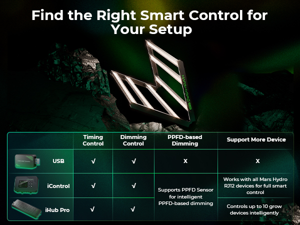 【Need to buy Mars Hydro iConnect Smart Controller to enable smart function】Mars Hydro smart FC4800 LED grow lights can be controlled remotely using MarsHydro app. This feature allows growers to adjust settings, and monitor the light’s performance from a distance. It provides convenience and flexibility, especially for growers who cannot be physically present in the grow area at all times.