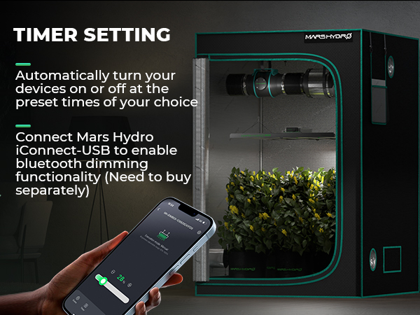 【Need to buy Mars Hydro iConnect Smart Controller to enable smart function】With MarsHydro app, smart FC4800 allows growers to set specific light cycles for their plants. This feature automates the process of turning the lights on and off at precise intervals, simulating natural day and night cycles. It helps maintain consistent light schedules without manual intervention.