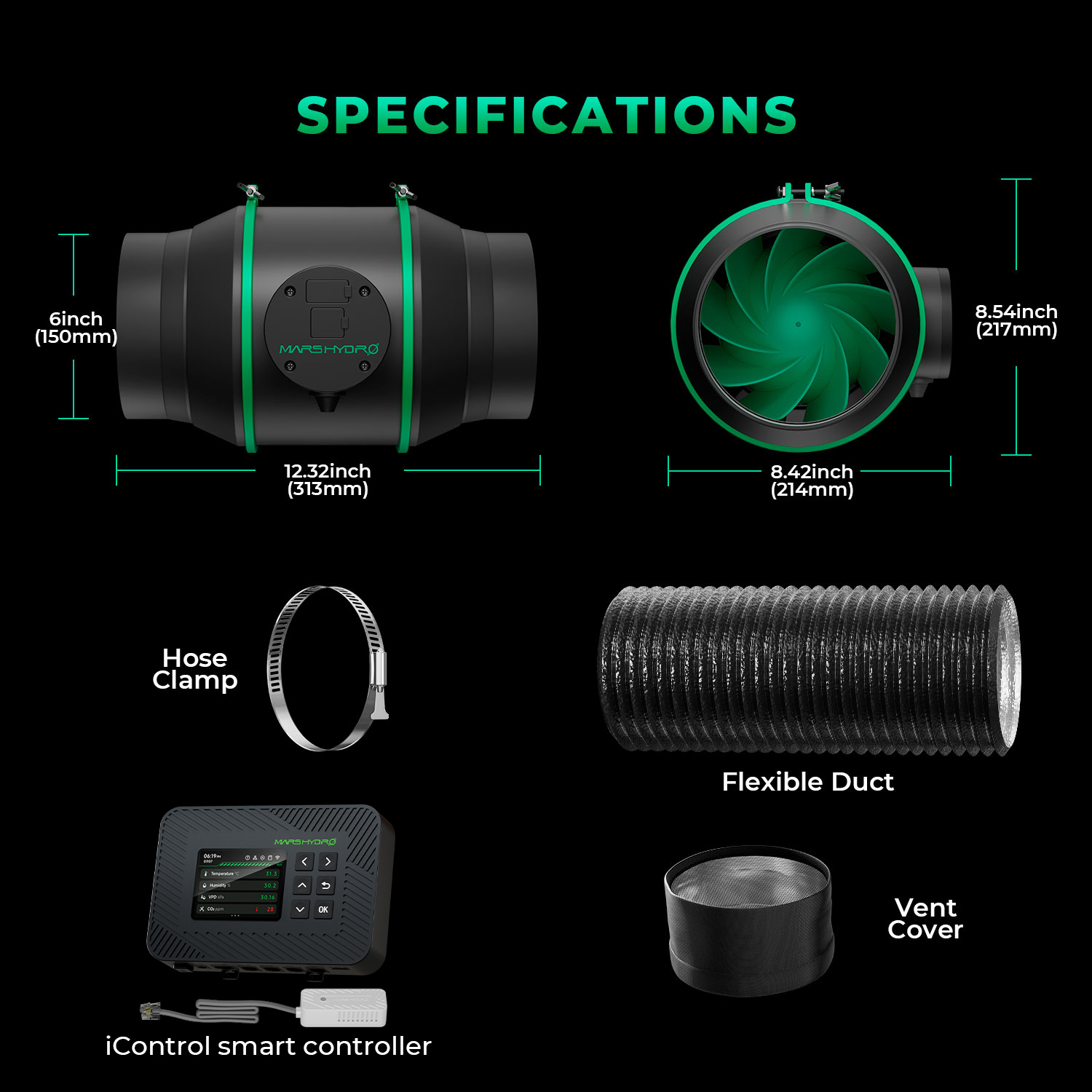 Mars Hydro 6" Inline Duct Fan and Carbon Filter Combo with iControl Smart Controller