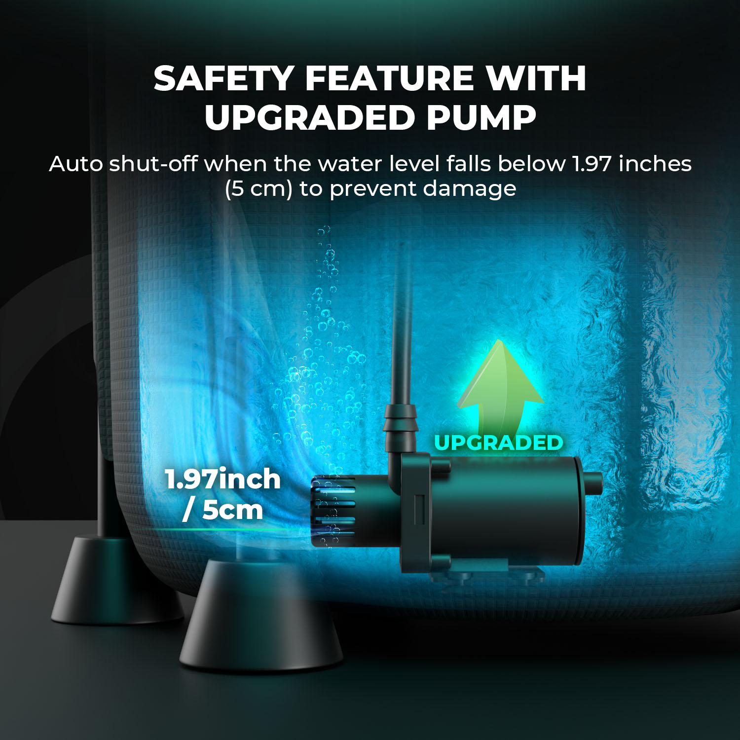 The 24W pump delivers a maximum flow rate of 900 liters per hour. For added protection, a strainer can be attached to the pump’s inlet to filter particles and prevent clogging. The upgraded pump features a safety mechanism that automatically shuts off when the water level falls below 1.97 inches (5 cm). For ultimate convenience, pair it with a timer or the iHub smart power strip for a fully automated drip irrigation system.